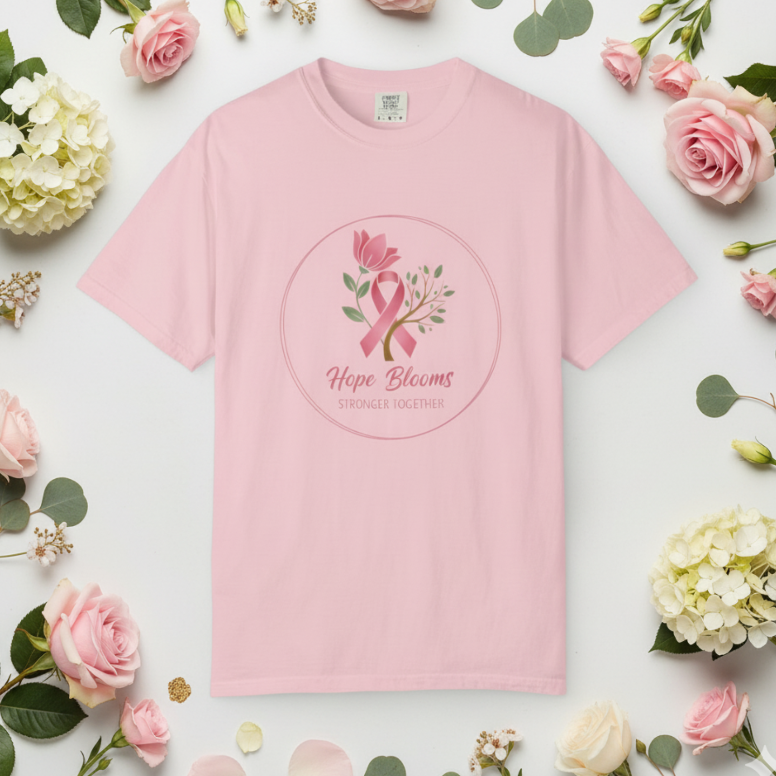 Show your support for breast cancer awareness with this unisex garment-dyed T-shirt. The soft color and texture of the garment gives off a calming and compassionate vibe, making it perfect for those who want to raise awareness for this cause. Ideal for supporters, survivors, and advocates of breast cancer awareness, this T-shirt is relevant for Breast Cancer Awareness Month and charity events.
